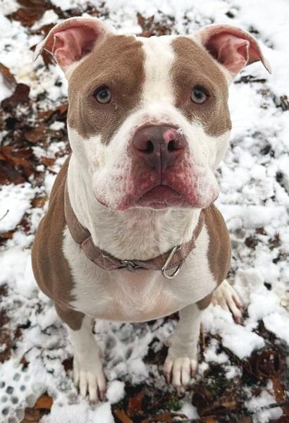 Notes: Dottie is a 1 year old Pit Bull who has been thriving in her foster home. This young lady is a very smart and driven gal who loves to play tug and chew on a good bone. Dottie LOVES her doggy friends, and would thrive in a house either alone or with some pals. She is respectful of their boundaries if they do not want to play, and can romp around all day if that is what they prefer. She loves to be with her people and will happily snuggle up in the couch on sit by your feet. Dottie is kennel and house trained. She does like to chase cats when she seems them run. She does well with people of all sizes, but can be boisterous so she may be too much for little kids or people unsteady on their feet. Dottie can be met either at the shelter or at her foster mom’s house in Cumberland.